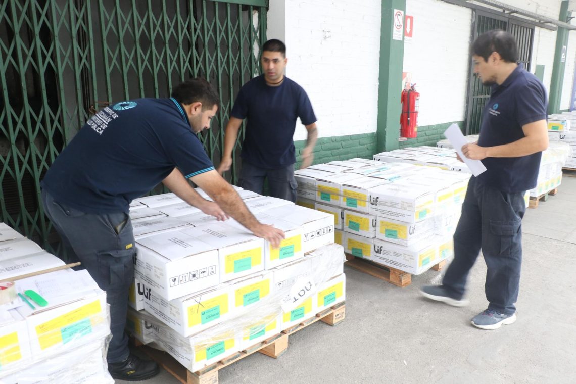 El secretario de Cooperación de Santa Fe, y coordinador del programa Objetivo Dengue, Cristian Cuhna, y el ministro de Salud de Tucumán, Luis Medina Ruiz, supervisaron el arribó a San Miguel de Tucumán de 40 mil repelentes producidos en el Laboratorio Industrial Farmacéutico (LIF), una donación del Gobierno de Santa Fe que permitirá reforzar las acciones de prevención ante la proliferación de mosquitos luego de las inundaciones por lluvias.